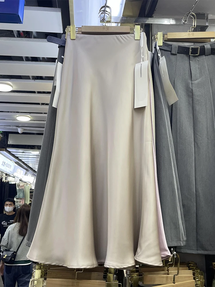 Wholesale 2026 Summer New High Waist Slim French Vintage Satin Bread Hip Fishtail Women's Half Length Skirt-6