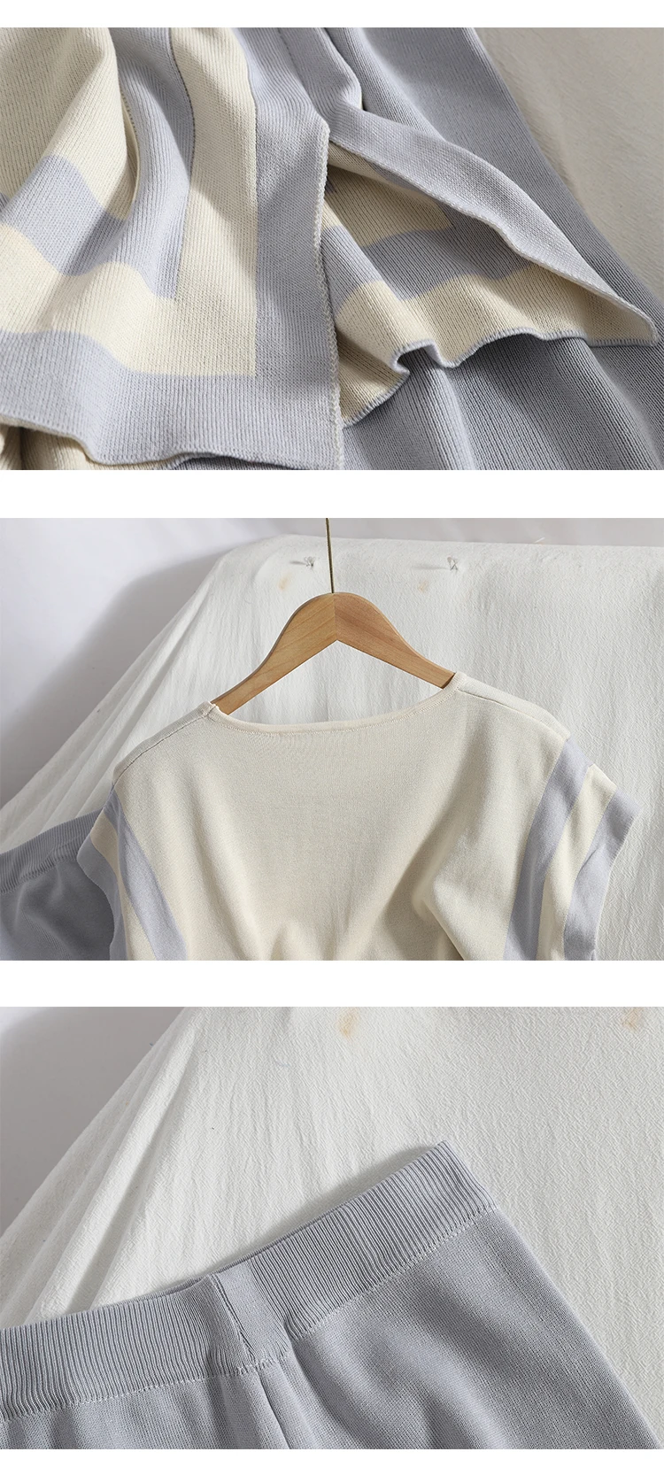 Striped Sleeveless Vest Top Wide-leg Knit Pants Sets